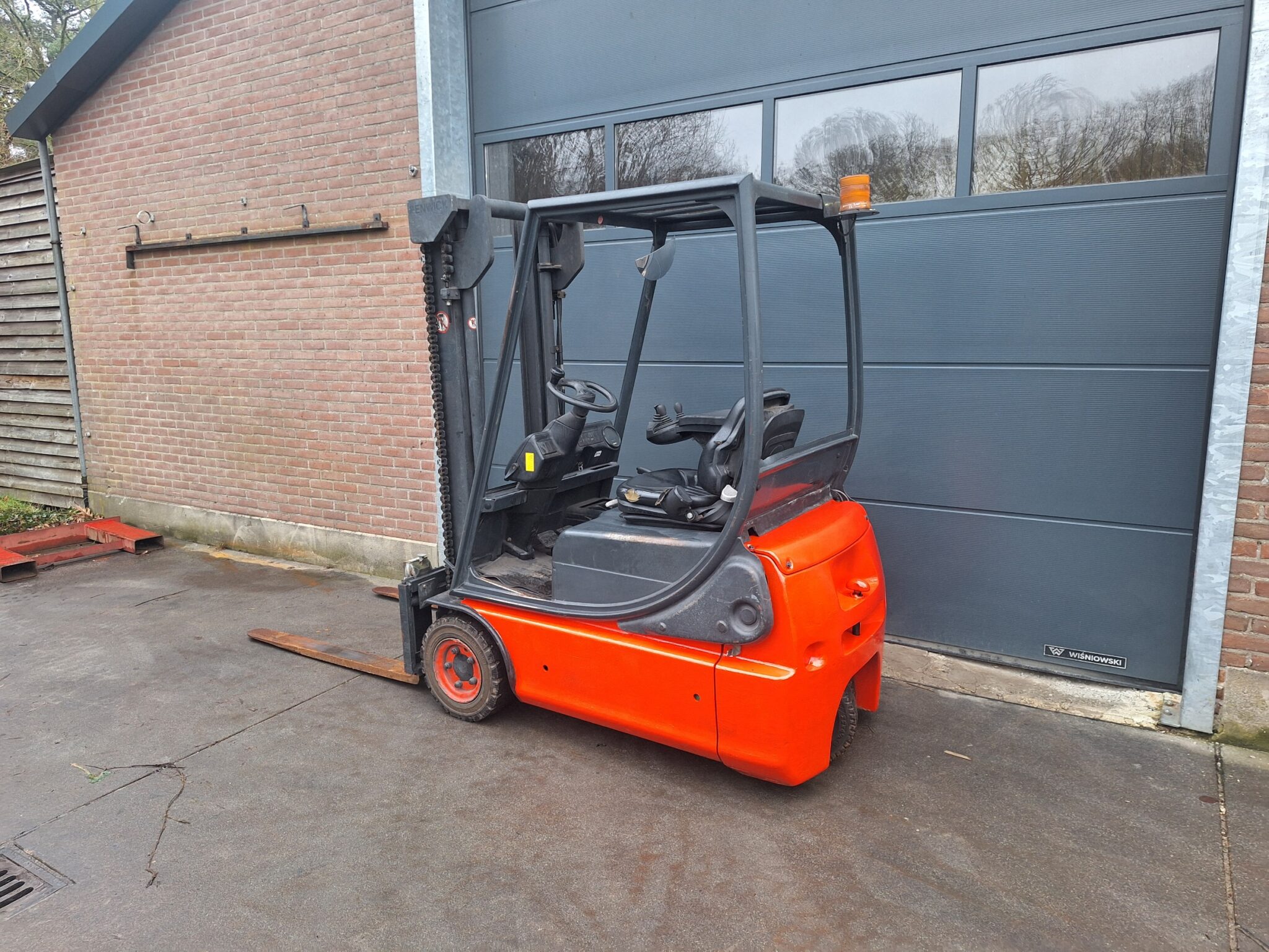Heftruck 1400 kilo en kan 310 cm hoog heffen.