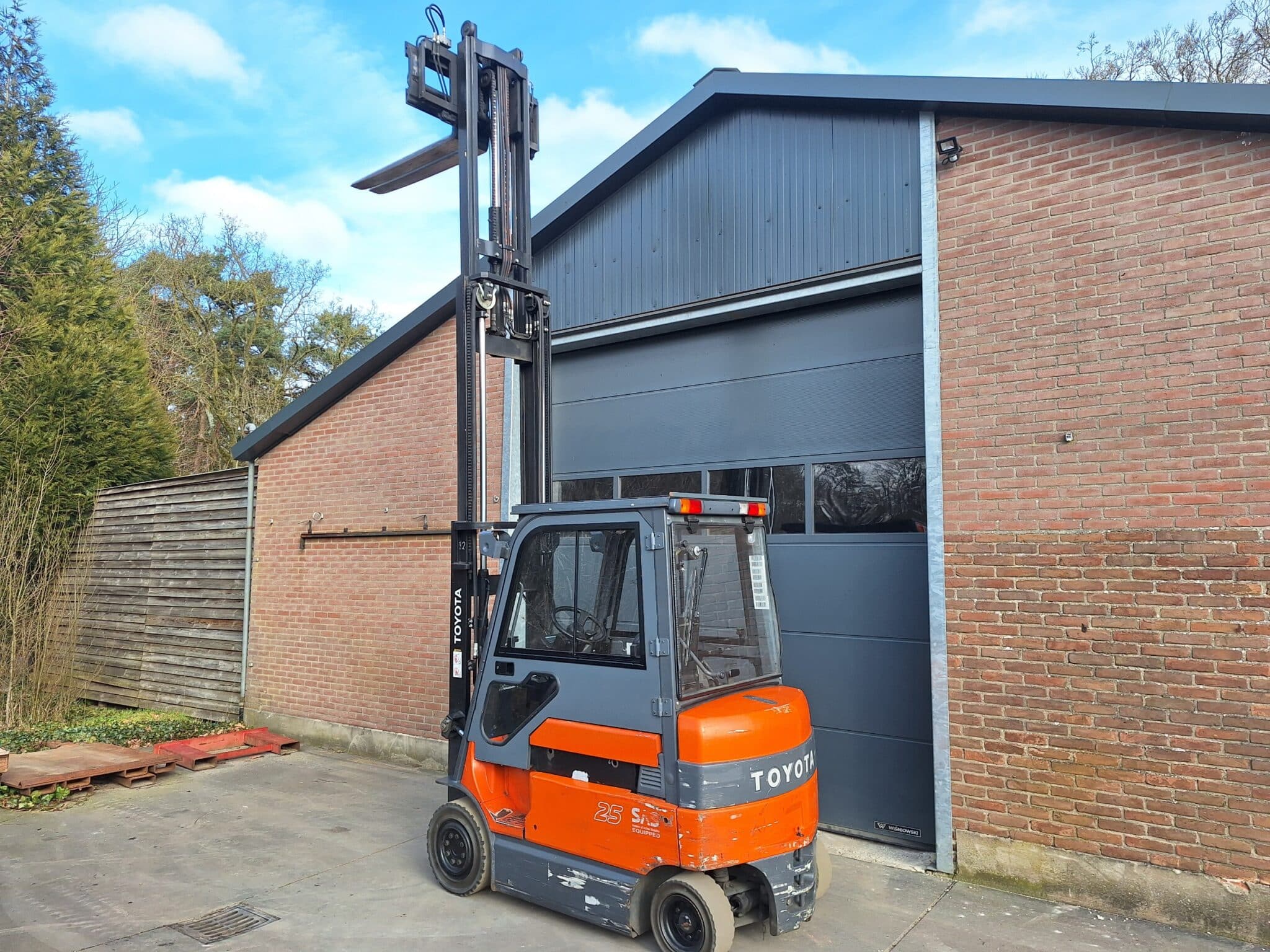 Met een drie delige freeliftmast, sideshift en vorkversteller.